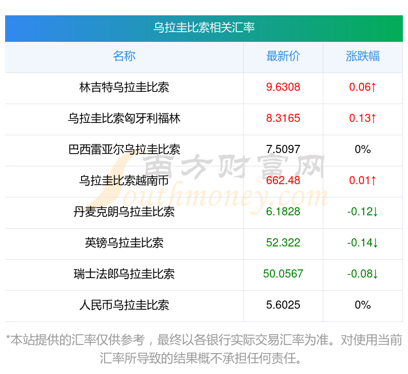 根據(jù)2025年11月17日匯率計算,UYU兌換MXN匯率最新價0.460500:今開價0.4601,昨收價0.4606,最高價0.4606,最低價0.4601。