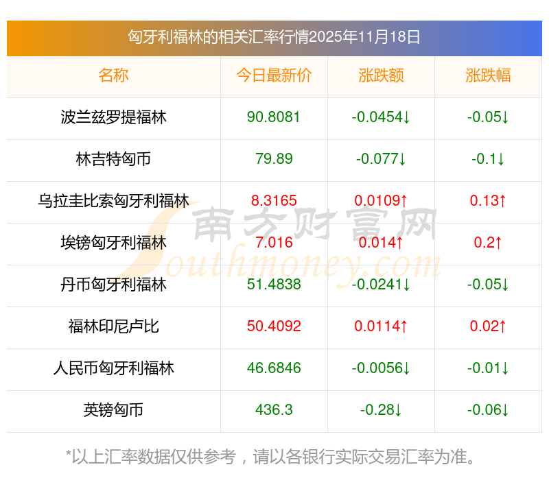 2025年11月18日匈牙利福林相關(guān)匯率查詢