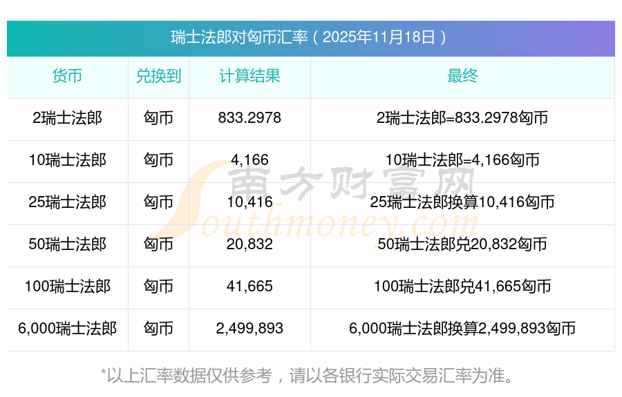 匯率實(shí)時(shí)更新!70瑞士法郎兌換匈幣匯率表(2025年11月18日)