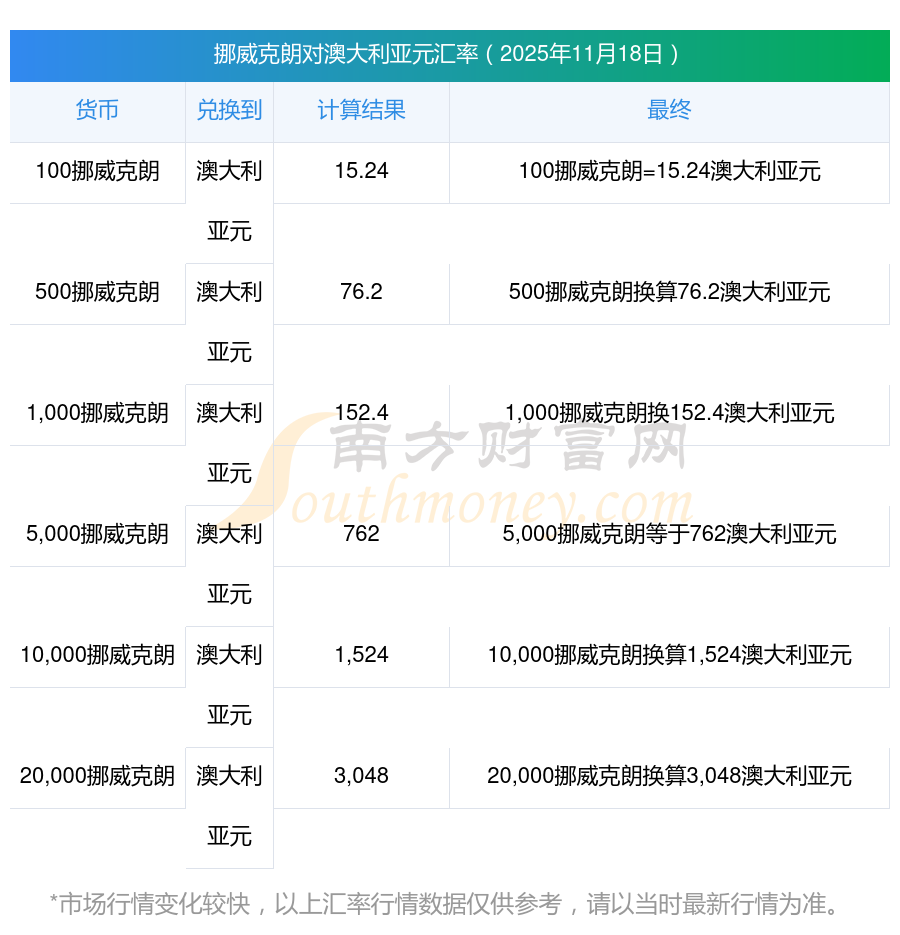 今天挪威克朗查詢:5挪威克朗對澳大利亞元匯率行情?2025-11-18