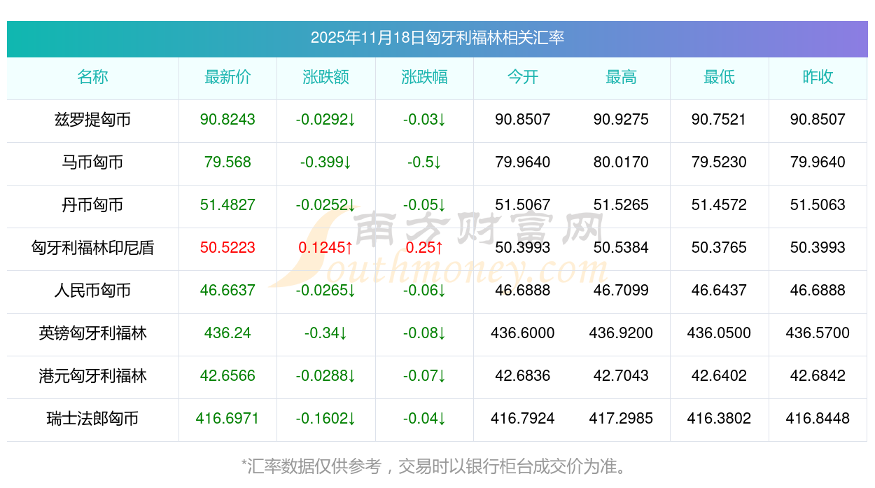 2025年11月18日匈牙利福林相關(guān)匯率查詢