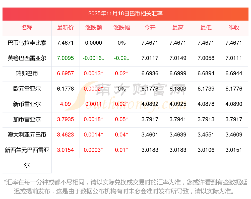 2025年11月18日巴幣相關匯率查詢