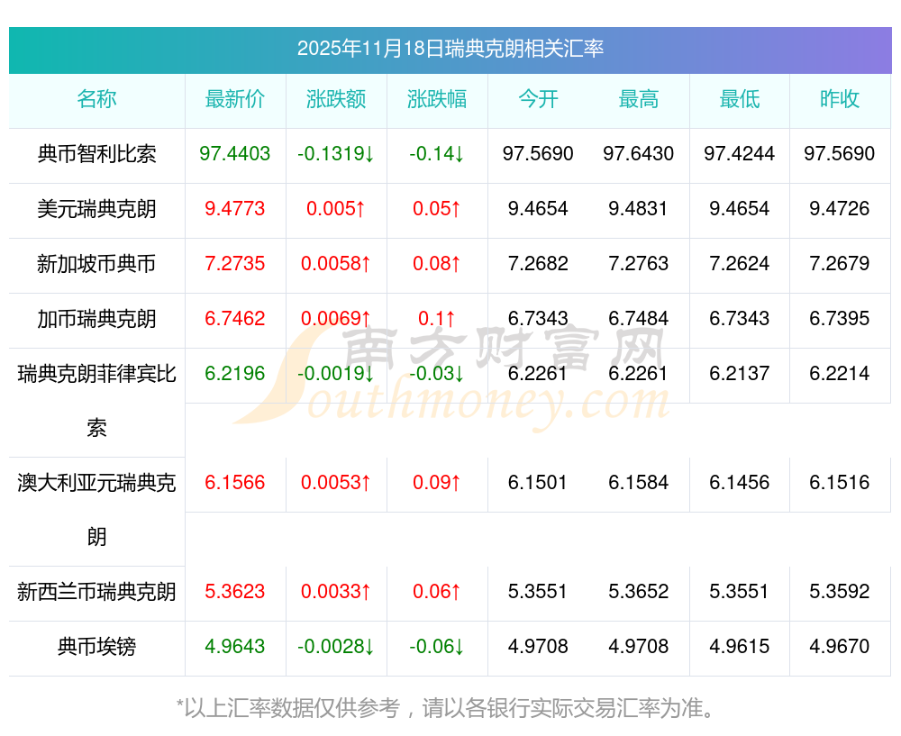 2025年11月18日瑞典克朗相關(guān)匯率查詢
