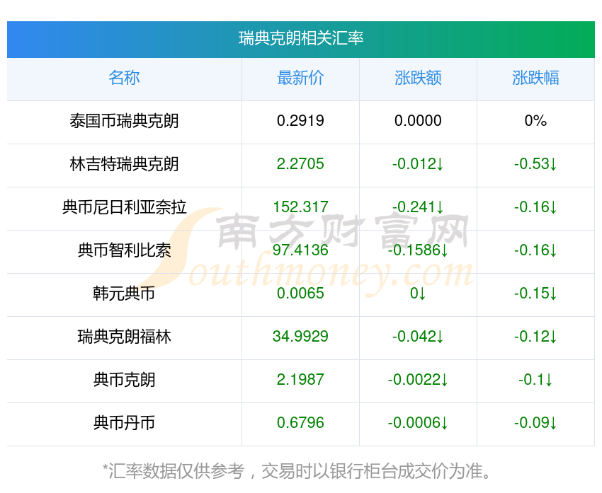 南方財富網為您提供瑞典克朗對福林匯率最新價格詳情。