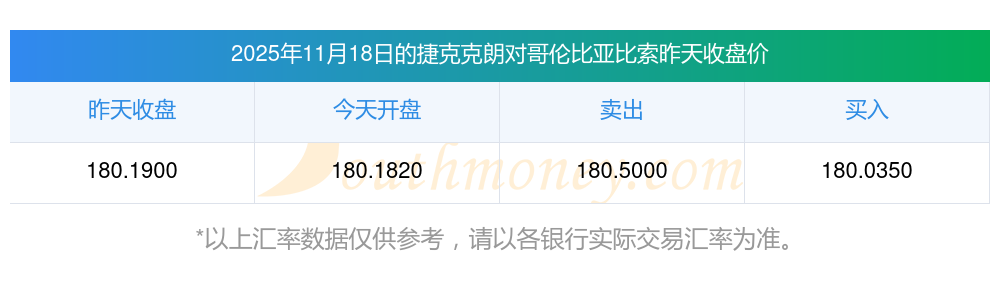 今日10捷克克朗哥倫比亞比索兌換匯率_實(shí)時(shí)匯率(2025年11月18日)