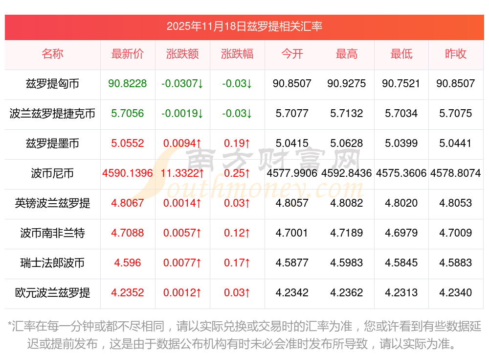 2025年11月18日茲羅提相關匯率查詢