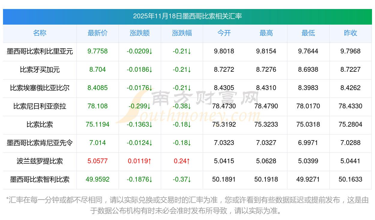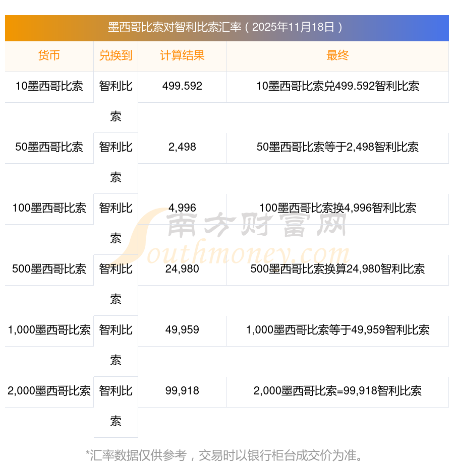 今天墨西哥比索轉(zhuǎn)換智利比索匯率如何計(jì)算?每日是多少? 11-18