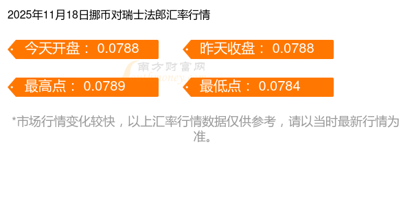 挪幣今日匯價(jià):12025年11月18日挪幣兌瑞士法郎匯價(jià)查詢
