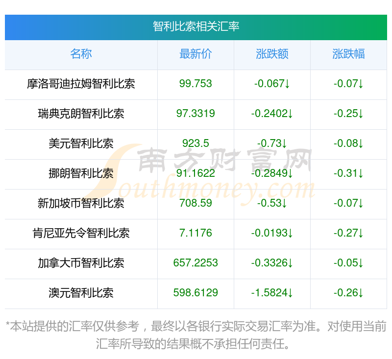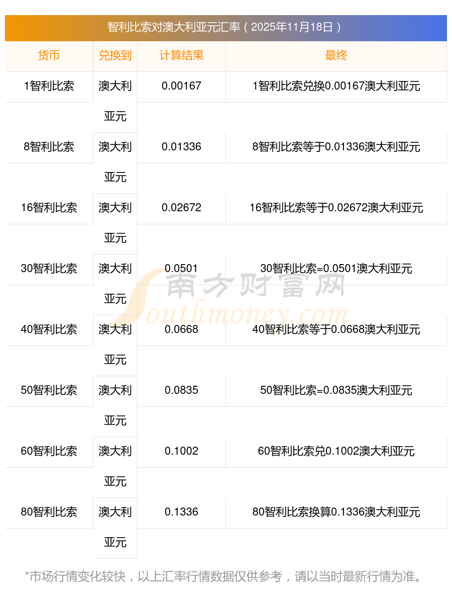 南方財(cái)富網(wǎng)為您提供智利比索對(duì)澳大利亞元匯率最新價(jià)格詳情。