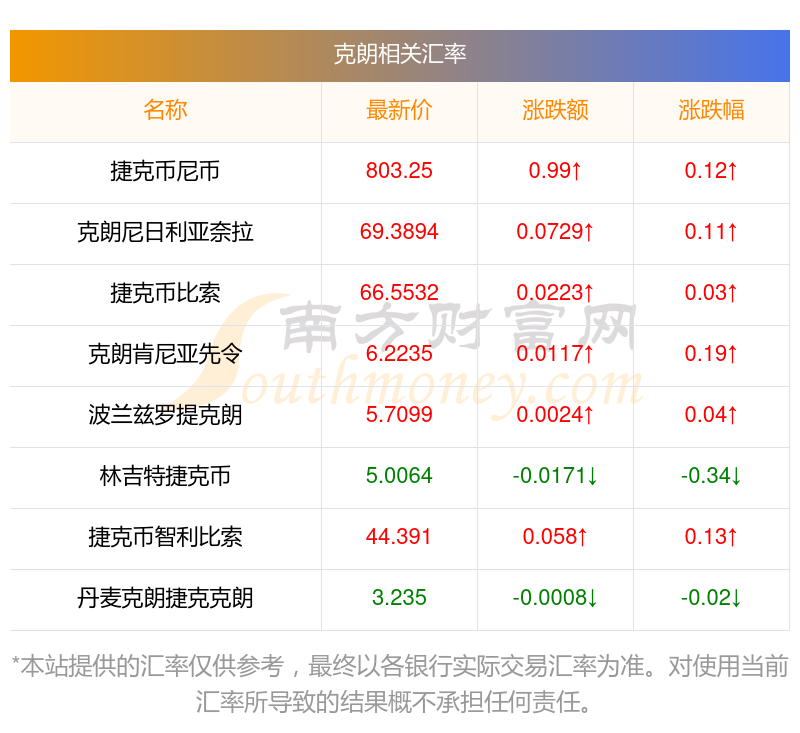 南方財富網為您提供克朗對尼日利亞奈拉匯率最新價格詳情。