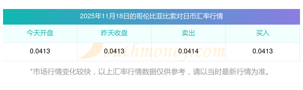 哥倫比亞比索今日匯率:哥倫比亞比索對日元匯率是多少?2025-11-18