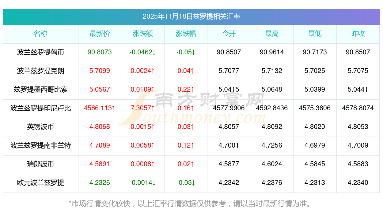 2025年11月18日茲羅提相關(guān)匯率查詢