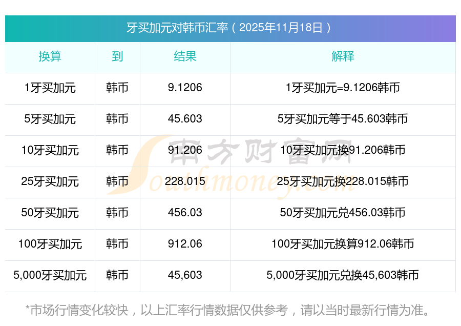 南方財(cái)富網(wǎng)為您提供牙買加元對(duì)韓幣匯率最新價(jià)格詳情。