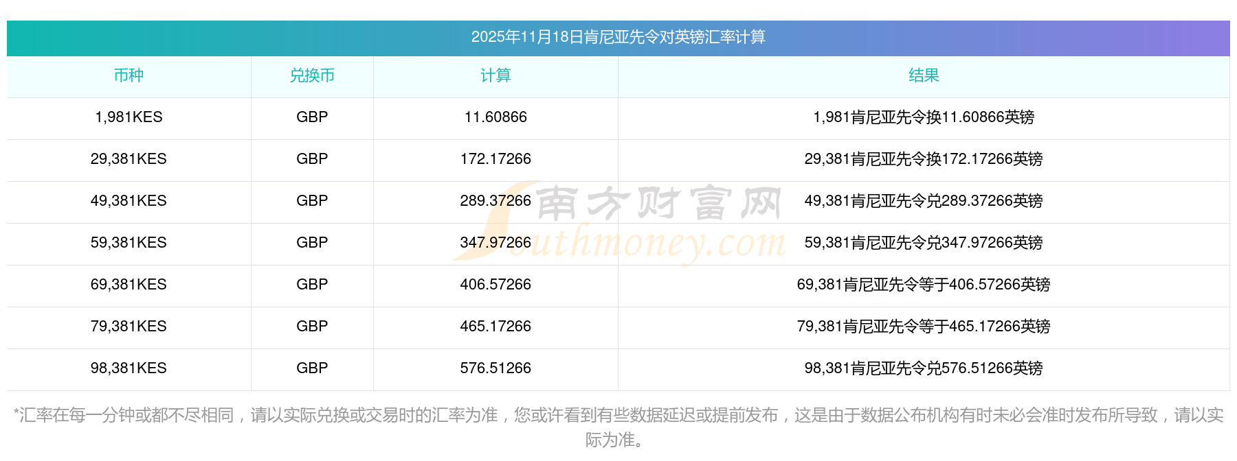 匯率今日換算:51肯尼亞先令對(duì)換英鎊匯率是多少2025年11月18日
