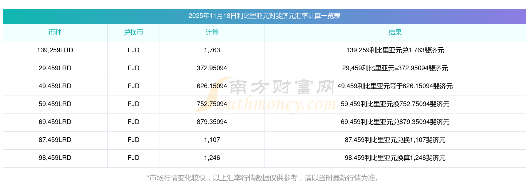 2025年11月18日17利比里亞元計(jì)算斐濟(jì)元等于多少?
