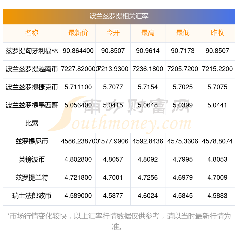 南方財(cái)富網(wǎng)為您提供波蘭茲羅提對越南幣匯率最新價(jià)格詳情。
