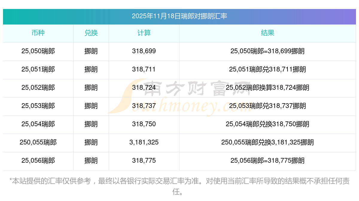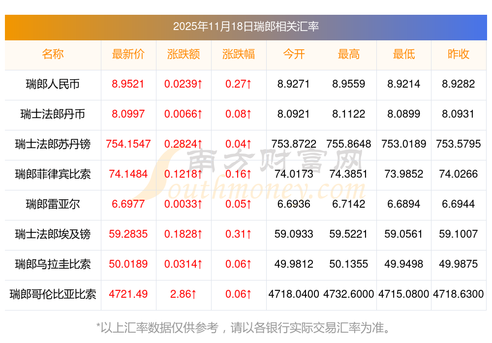 南方財(cái)富網(wǎng)為您提供瑞郎對(duì)挪朗匯率最新價(jià)格詳情。