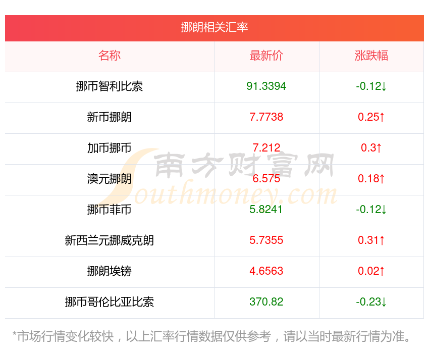 南方財富網(wǎng)為您提供挪朗對尼日利亞奈拉匯率最新價格詳情。