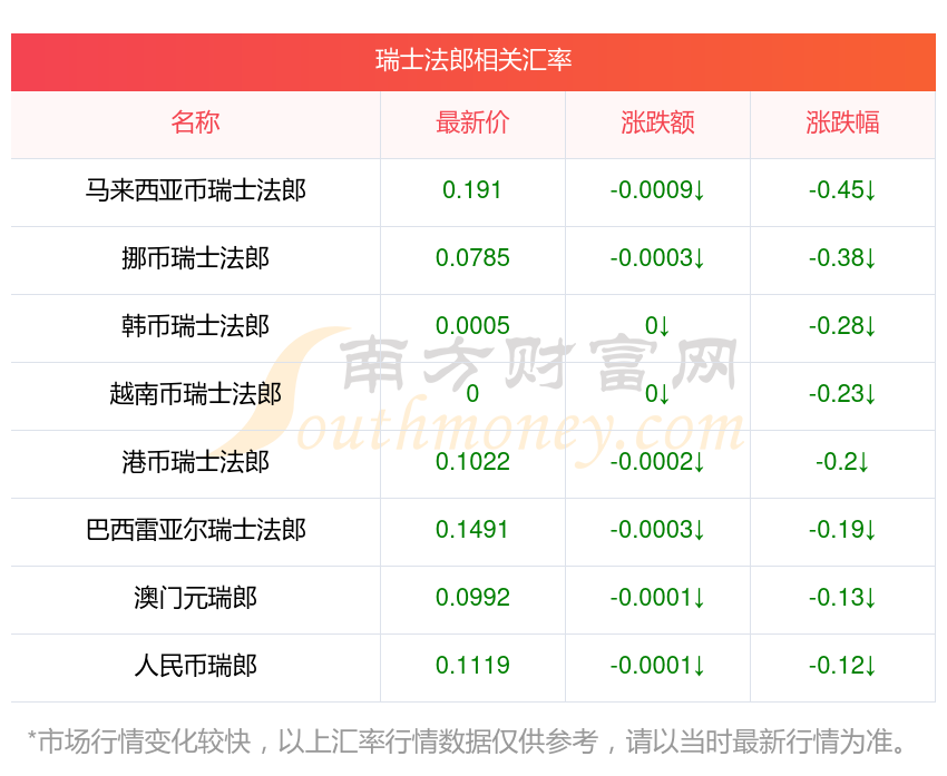 南方財(cái)富網(wǎng)為您提供瑞士法郎對(duì)典幣匯率最新價(jià)格詳情。
