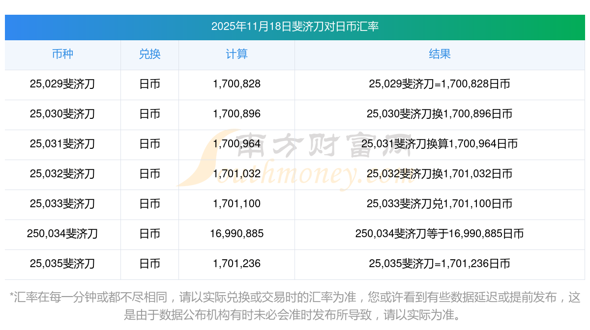 南方財富網(wǎng)為您提供斐濟刀對日幣匯率最新價格詳情。