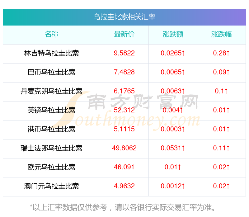 南方財(cái)富網(wǎng)為您提供烏拉圭比索對挪威克朗匯率最新價(jià)格詳情。