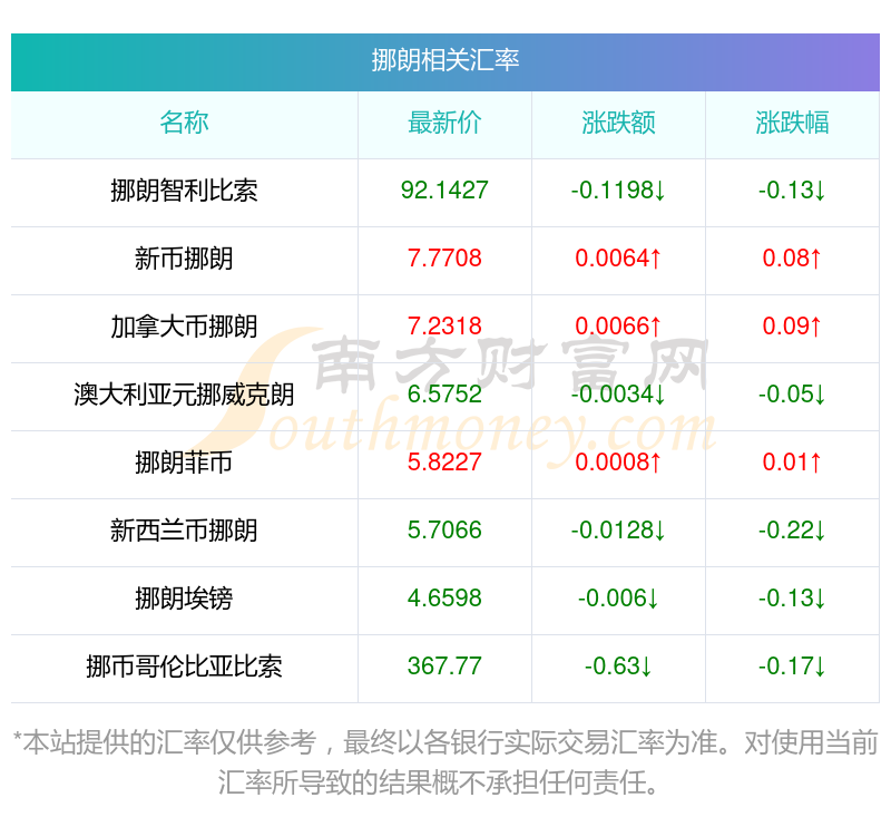 南方財富網(wǎng)為您提供挪朗對克朗匯率最新價格詳情。