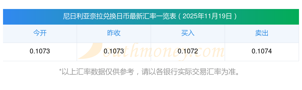 11月19日匯率:2尼日利亞奈拉等于多少日元?