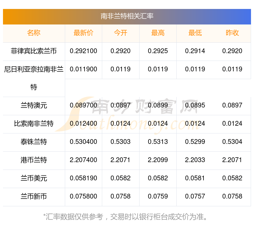 2025年11月19日南非蘭特相關(guān)匯率查詢