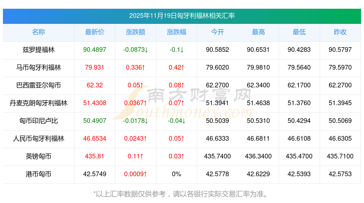 2025年11月19日匈牙利福林相關(guān)匯率查詢