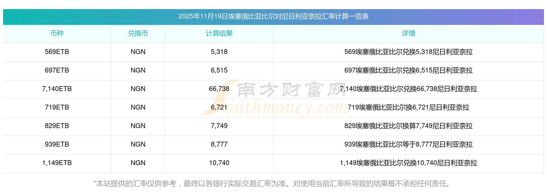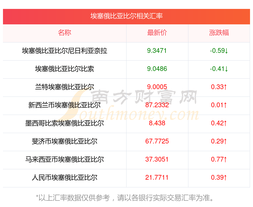 南方財(cái)富網(wǎng)為您提供埃塞俄比亞比爾對(duì)尼日利亞奈拉匯率最新價(jià)格詳情。