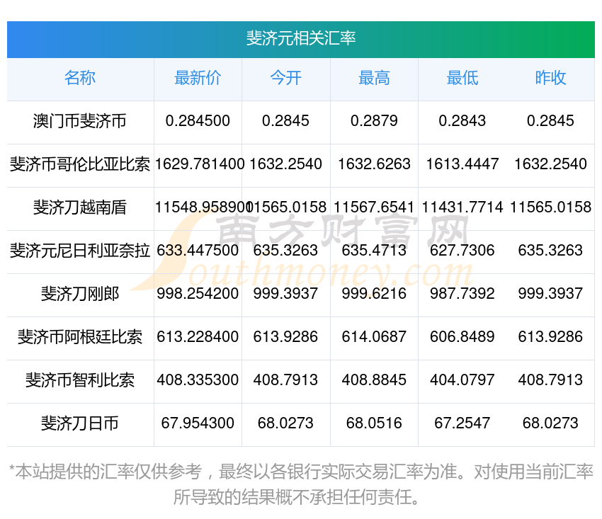 南方財富網(wǎng)為您提供斐濟元對比索匯率最新價格詳情。