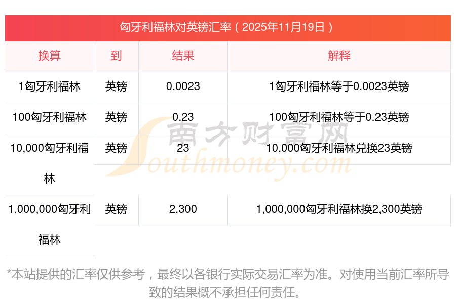 匯率調整匈牙利福林對英鎊是多少? 2025年11月19日