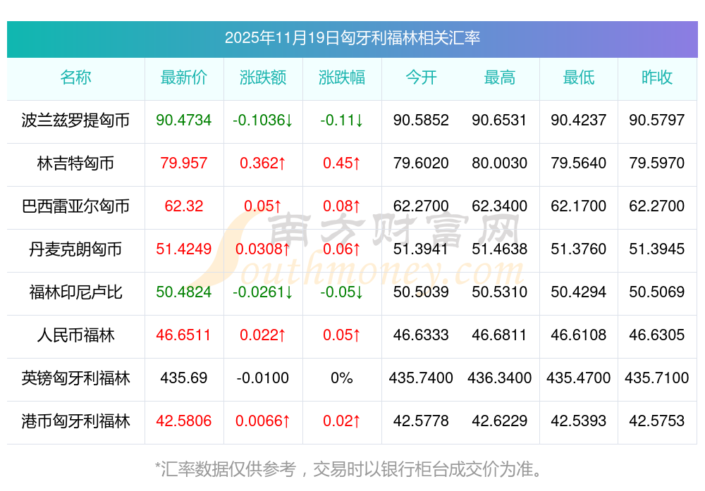 南方財富網為您提供匈牙利福林對英鎊匯率最新價格詳情。