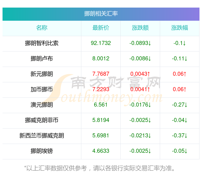 南方財富網(wǎng)為您提供挪朗對印尼盧比匯率最新價格詳情。