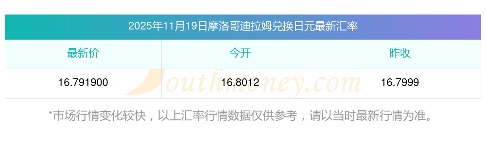 今日迪拉姆匯率行情 1摩洛哥迪拉姆等于多少日元?2025/11/19