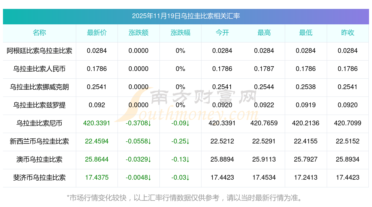 南方財(cái)富網(wǎng)為您提供烏拉圭比索對(duì)南非蘭特匯率最新價(jià)格詳情。