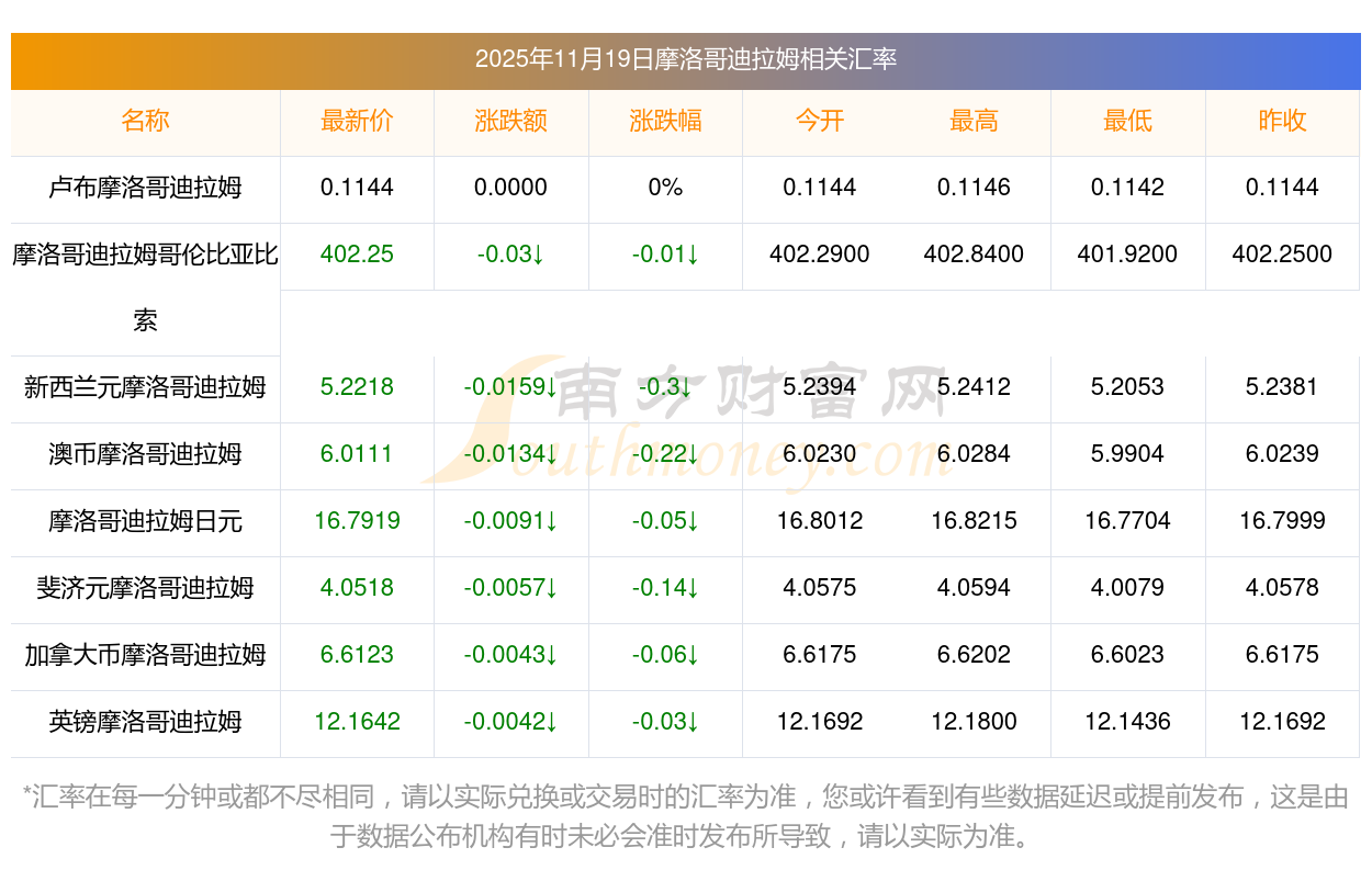 2025年11月19日摩洛哥迪拉姆相關(guān)匯率查詢