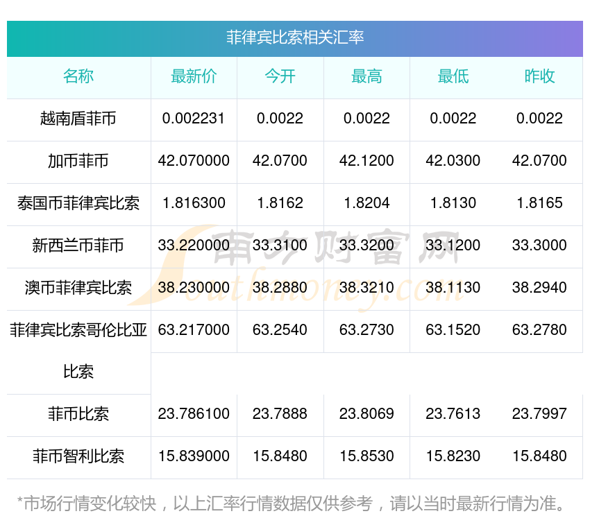 南方財(cái)富網(wǎng)為您提供菲律賓比索對(duì)克朗匯率最新價(jià)格詳情。