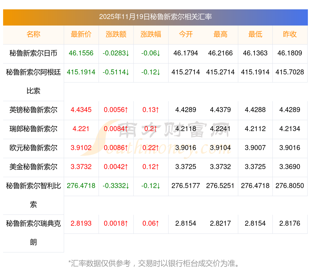 2025年11月19日秘魯新索爾相關(guān)匯率查詢