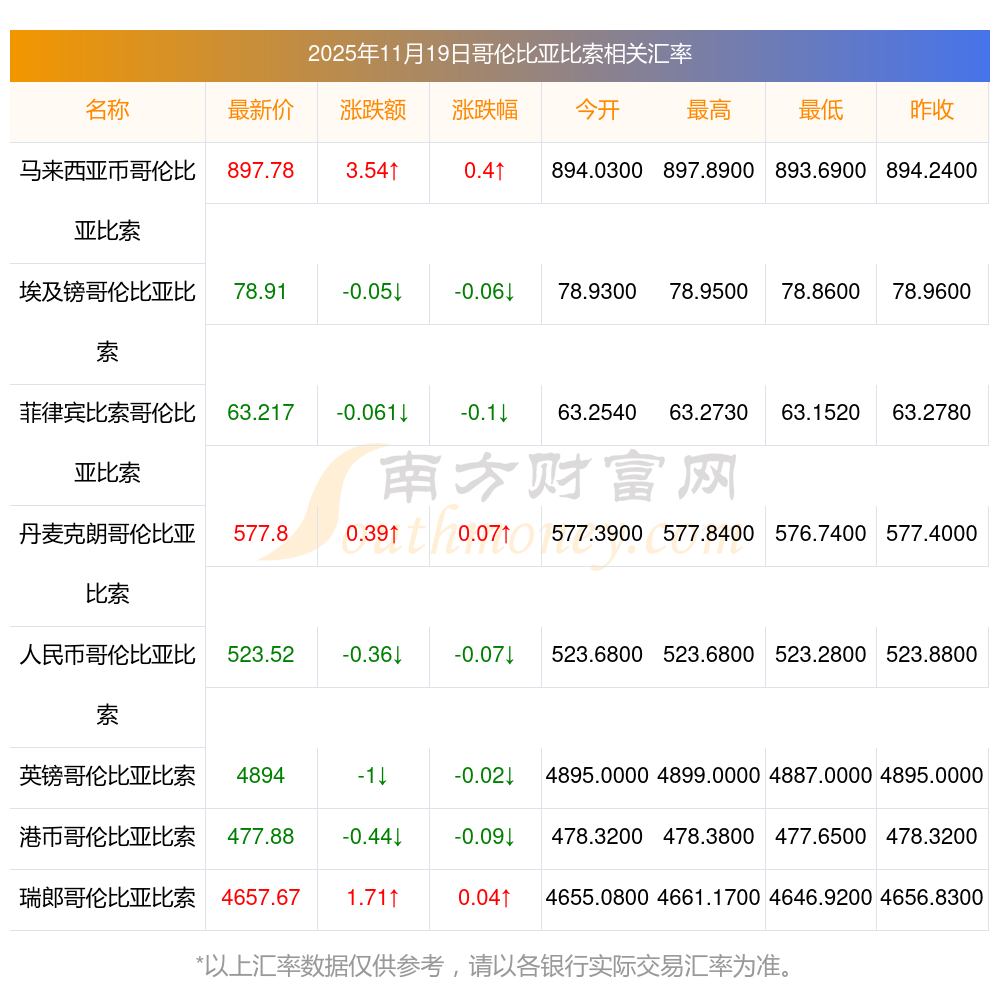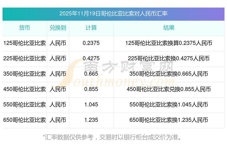不同貨幣兌換人民幣的匯率 今天哥倫比亞比索兌人民幣兌換多少元?(11月19日)
