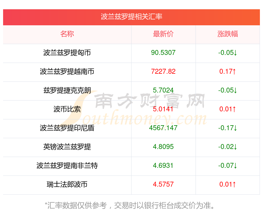 南方財(cái)富網(wǎng)為您提供波蘭茲羅提對南非蘭特匯率最新價(jià)格詳情。