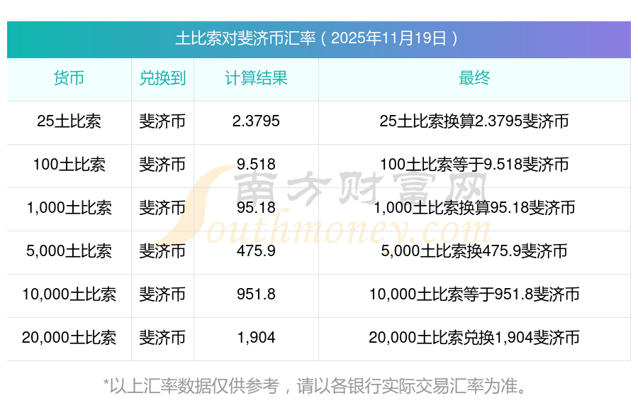 2025年11月19日土比索對(duì)斐濟(jì)幣匯率?
