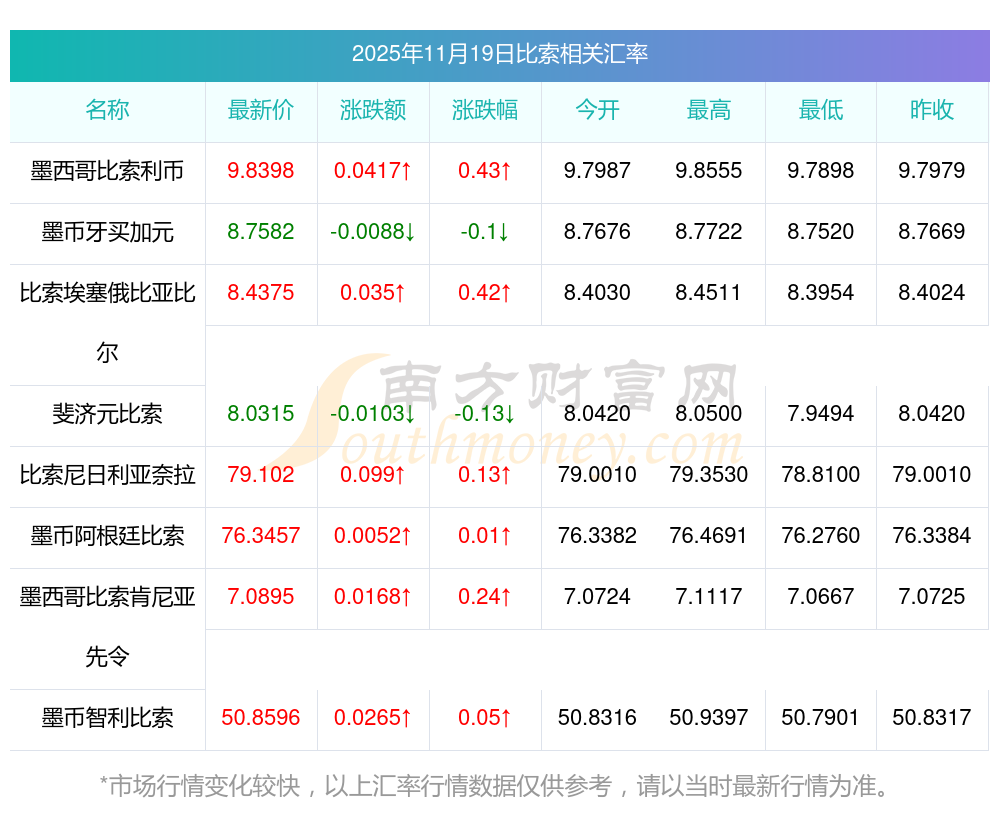 今日比索與瑞士法郎匯率實(shí)時查詢 11-19