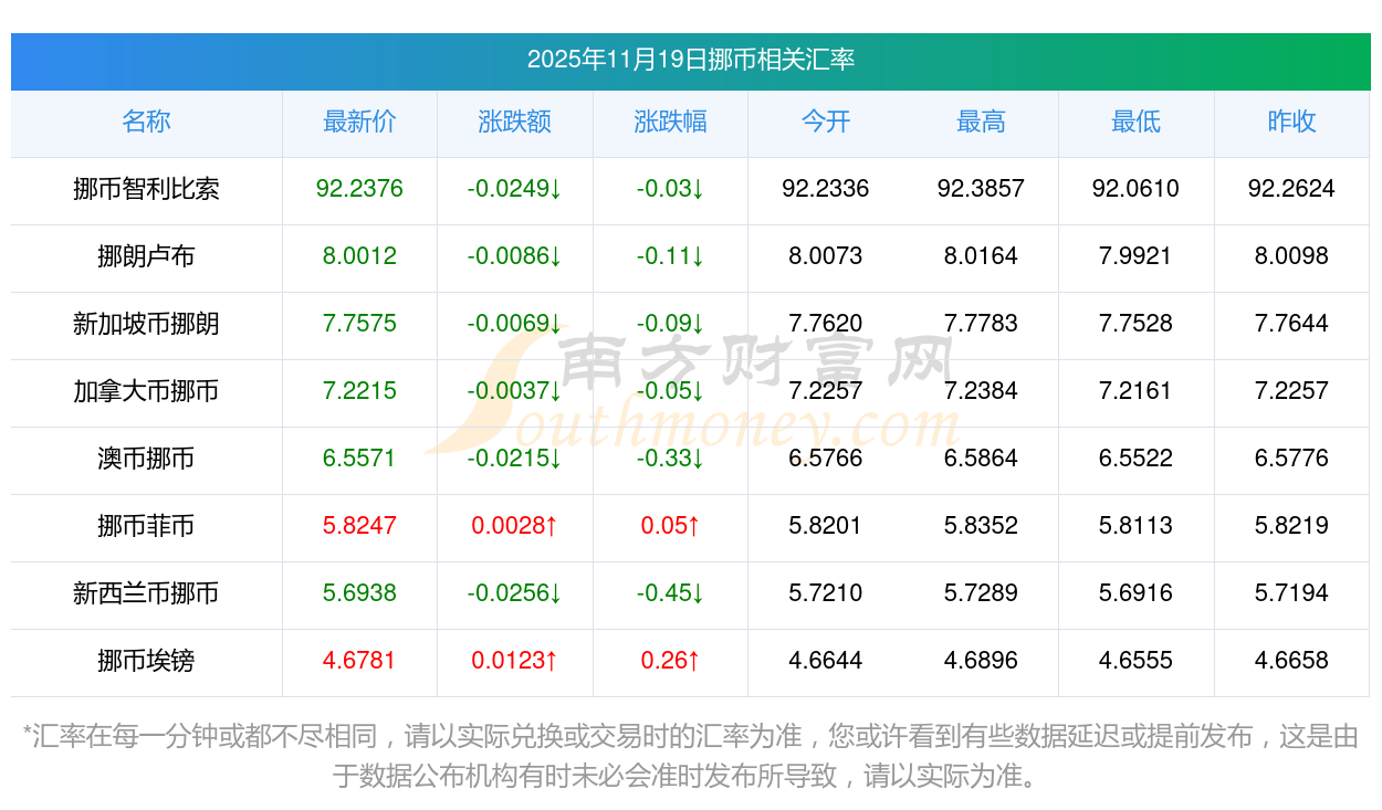 2025年11月19日挪幣相關(guān)匯率查詢