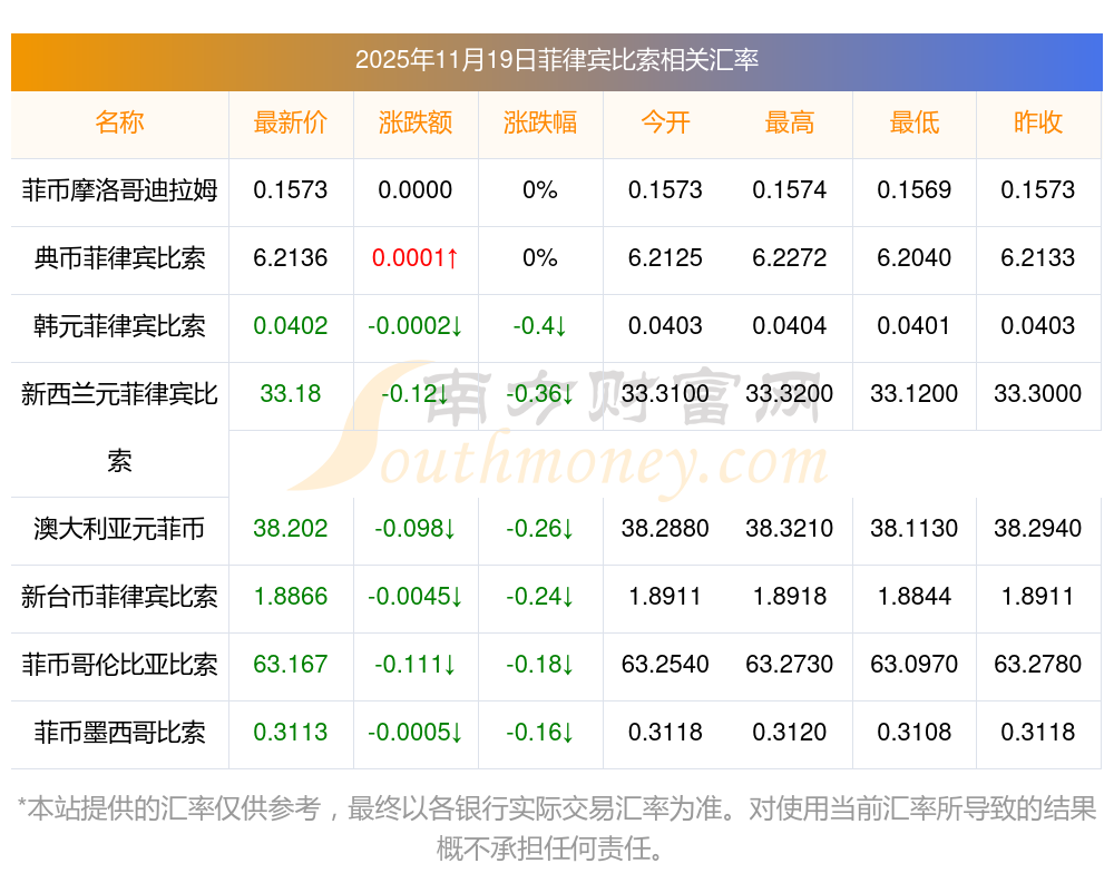 南方財富網(wǎng)為您提供菲律賓比索對港幣匯率最新價格詳情。
