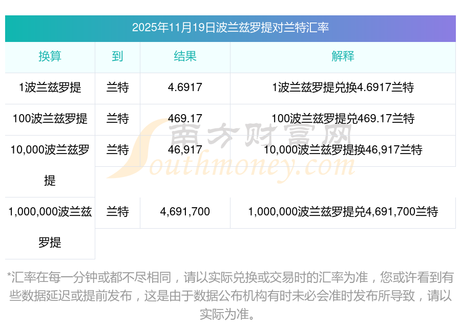 南方財(cái)富網(wǎng)為您提供波蘭茲羅提對(duì)蘭特匯率最新價(jià)格詳情。