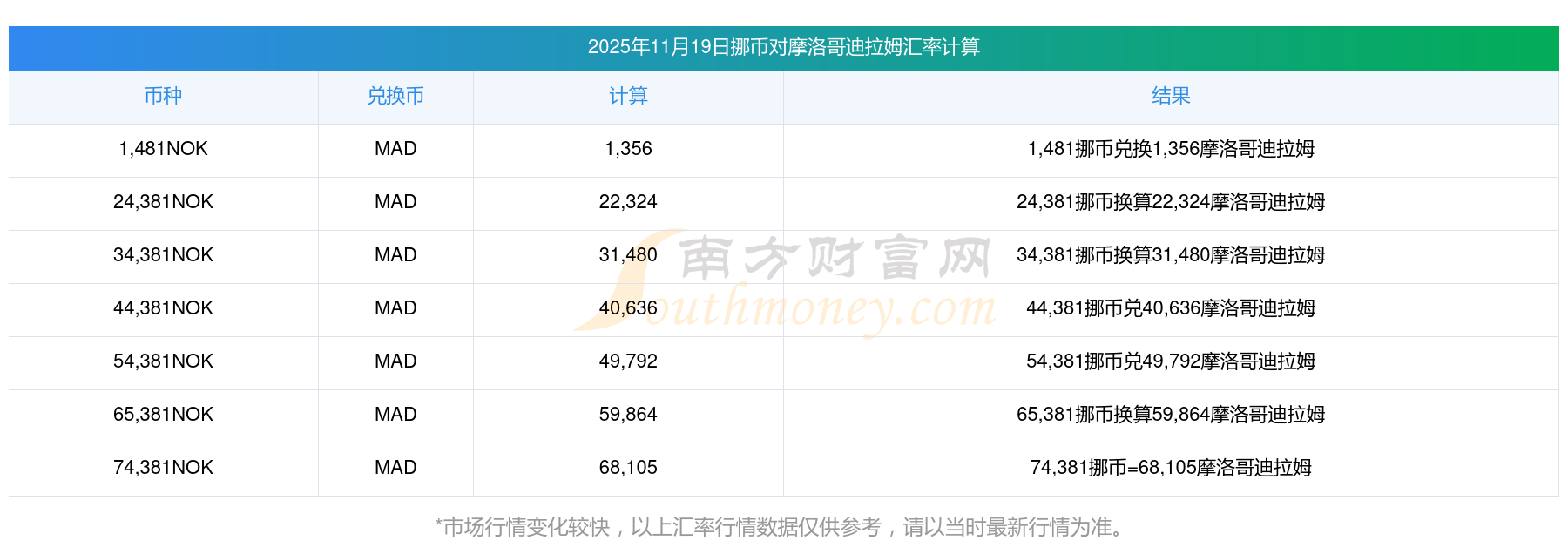 2025/11/19 25挪幣兌換成摩洛哥迪拉姆匯率是多少_匯率查詢方法