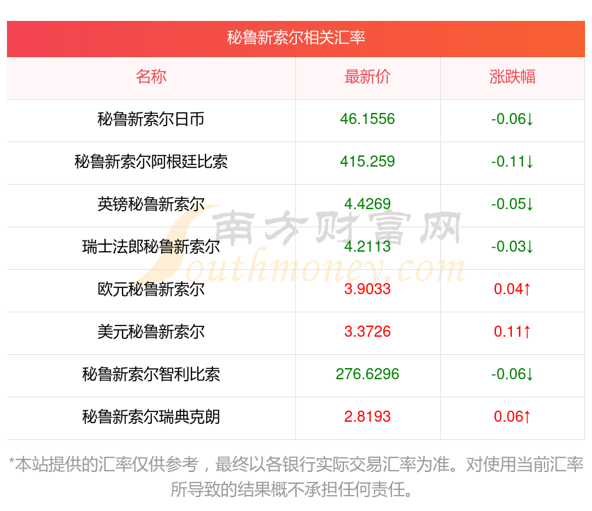 2025年11月19日秘魯新索爾相關(guān)匯率查詢
