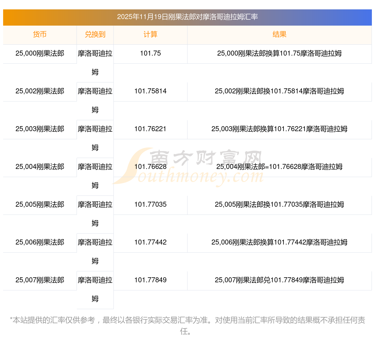 匯率實時更新!92剛果法郎兌換摩洛哥迪拉姆匯率表(2025年11月19日)