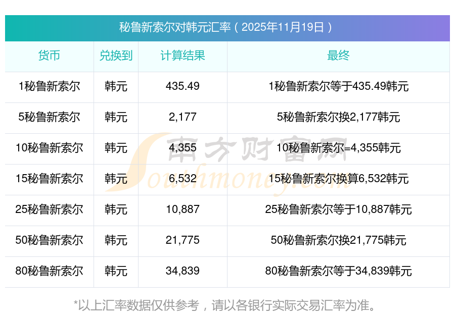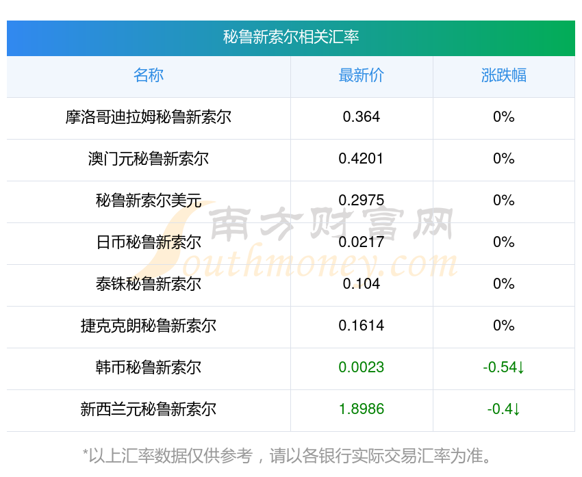 南方財富網(wǎng)為您提供秘魯新索爾對韓元匯率最新價格詳情。